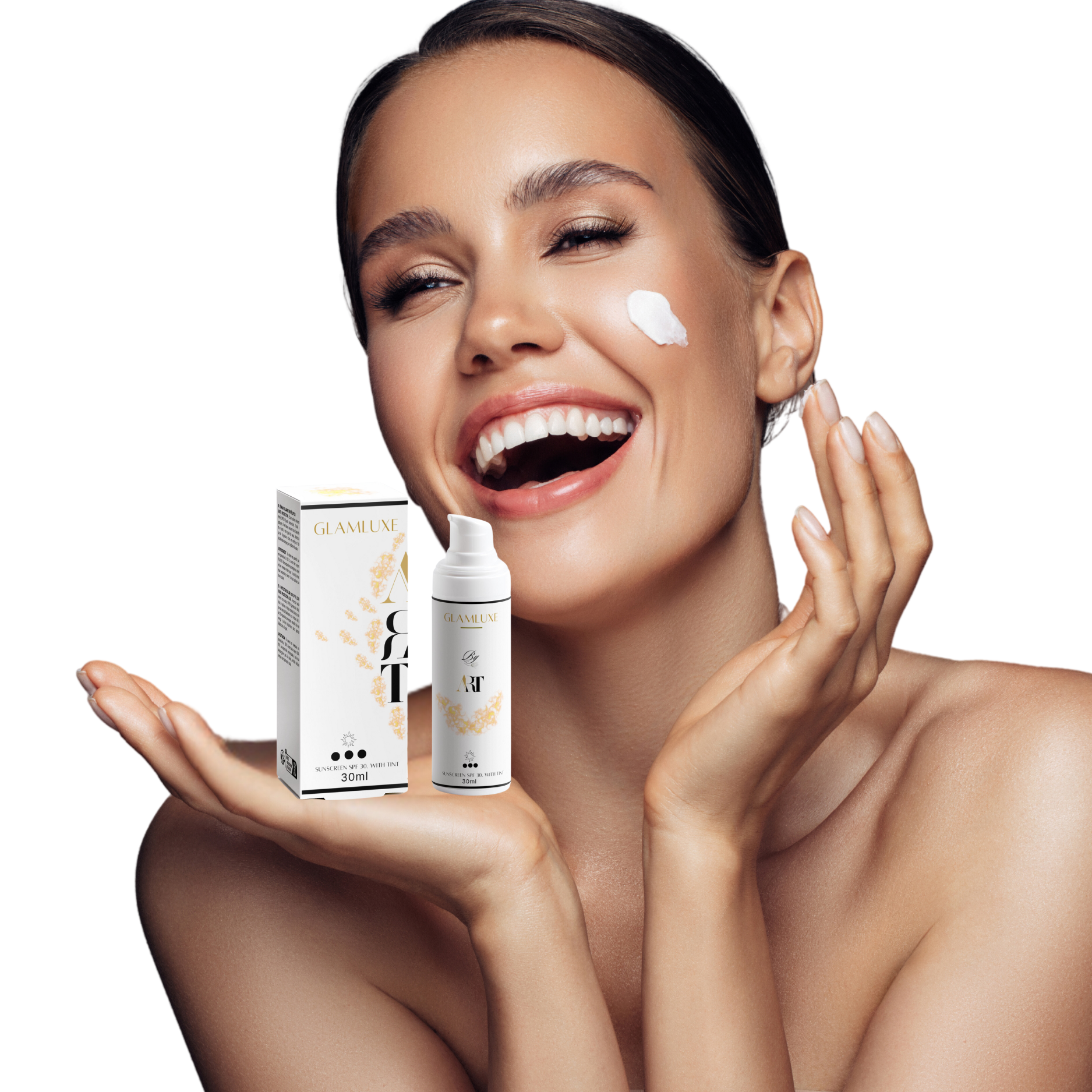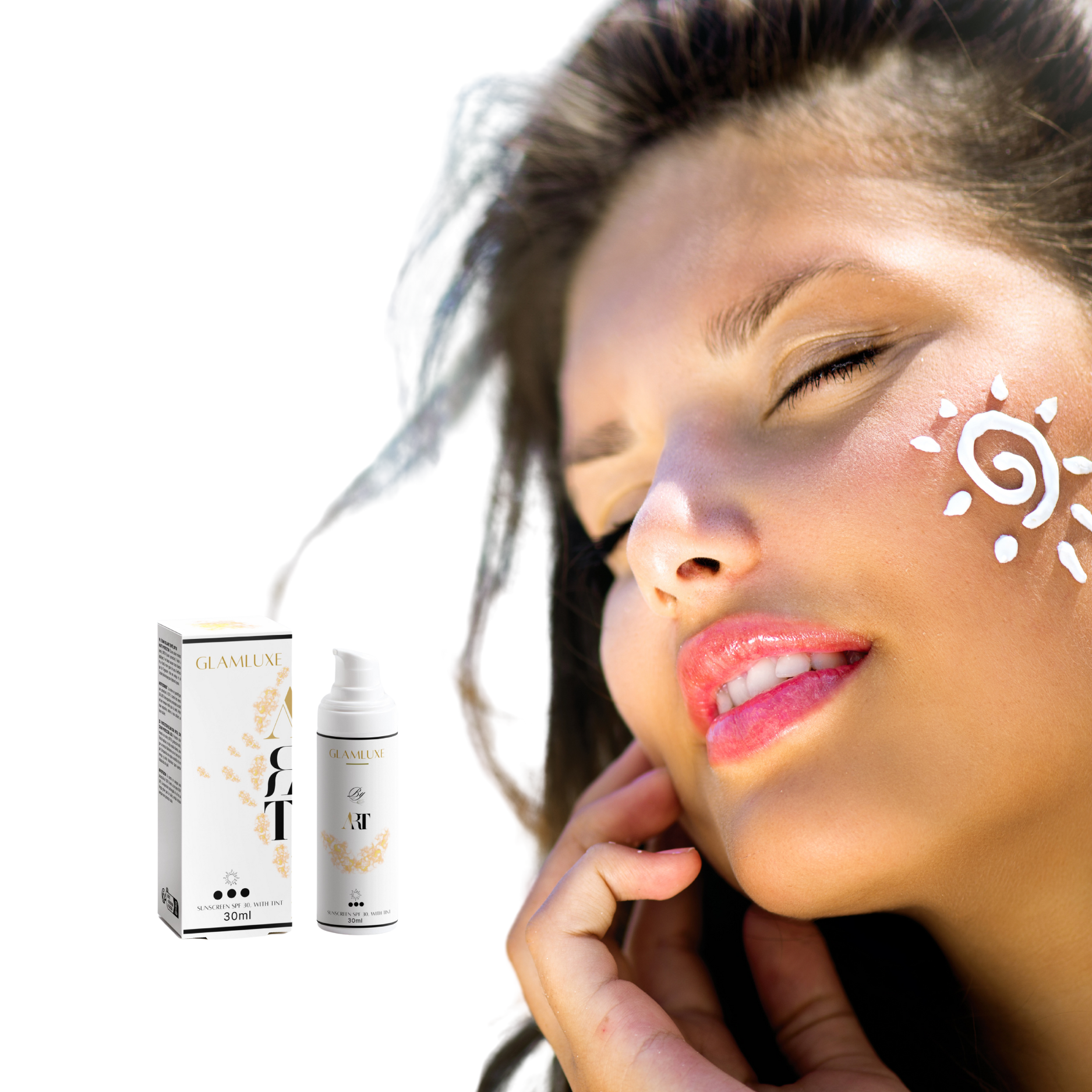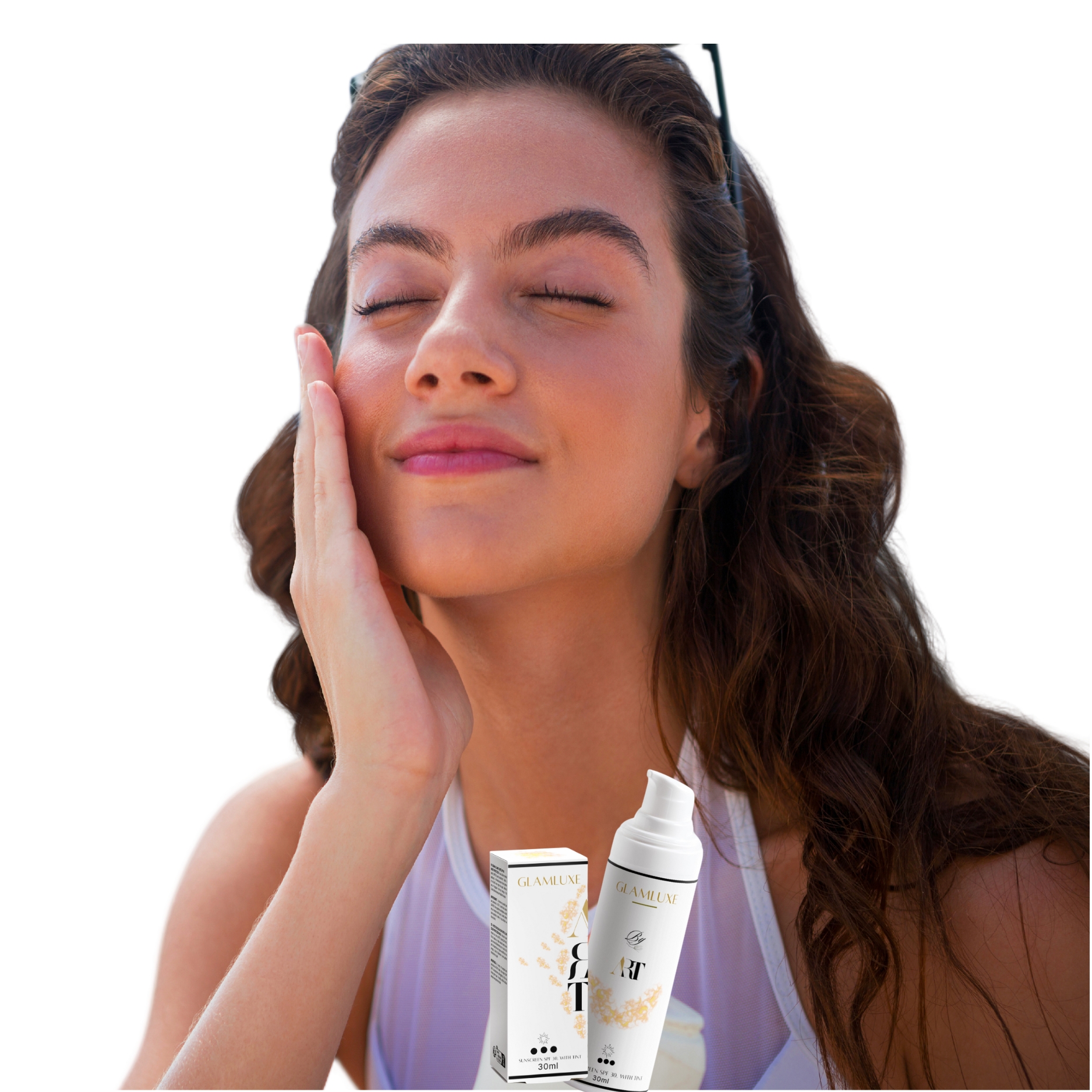 Experience the glow of daily sun care with Glamluxe Mineral-Based Tinted Sunscreen SPF30. This dermatologically tested, COSMOS NATURAL certified formula for ages 16+ is 98% natural and vegan. Its smooth, creamy texture with Zinc Oxide and Hyaluronic Acid blends seamlessly to offer broad-spectrum protection without a white cast. Housed in a 30 ml tube-shaped recycled plastic pump bottle with a juicy fruit and ylang-ylang aroma, it provides a confident, skin-loving finish.
